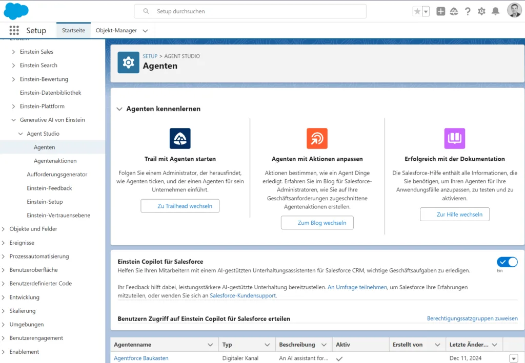 Das Agentforce Studio bietet mit dem Agent Builder eine intuitive Oberfläche zur Systemkonfiguration. Geschäftsprozessoptimierung erfolgt durch einfaches Drag-and-Drop von Funktionen und Workflows. Die Anpassung von Automatisierungsregeln geschieht ohne Programmieraufwand.