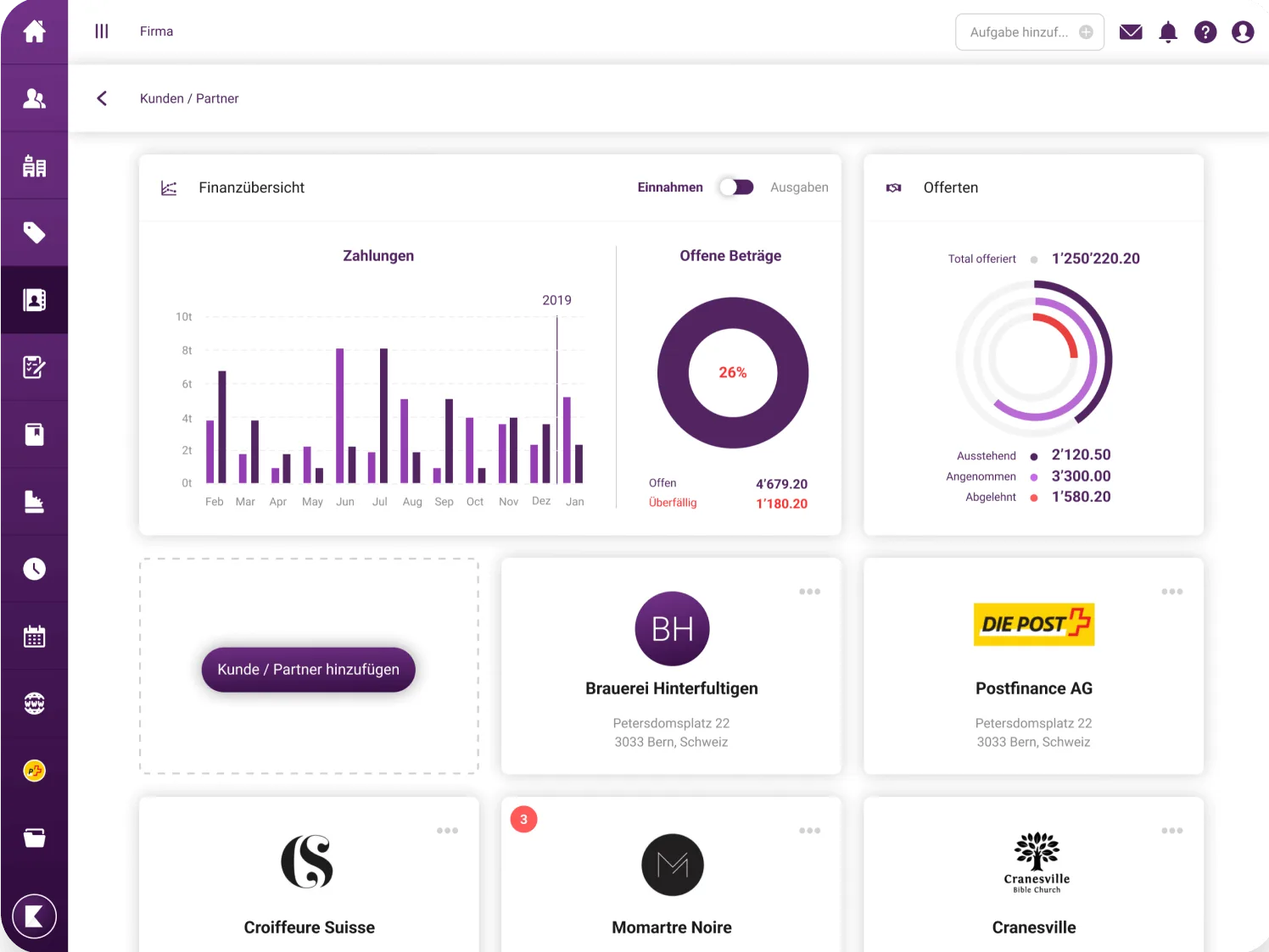 Ideal für: Kleine bis mittlere Unternehmen in der Schweiz, die eine umfassende, benutzerfreundliche Lösung für ihre gesamte Geschäftsadministration suchen. Besonders geeignet für Unternehmer, die Wert auf Automatisierung, lokale Compliance und einfache Handhabung legen.