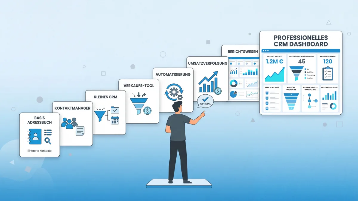 Der Übergang von einfacher Kontaktverwaltung zum professionellen CRM-System ist fliessend, aber die Warnsignale sind eindeutig: