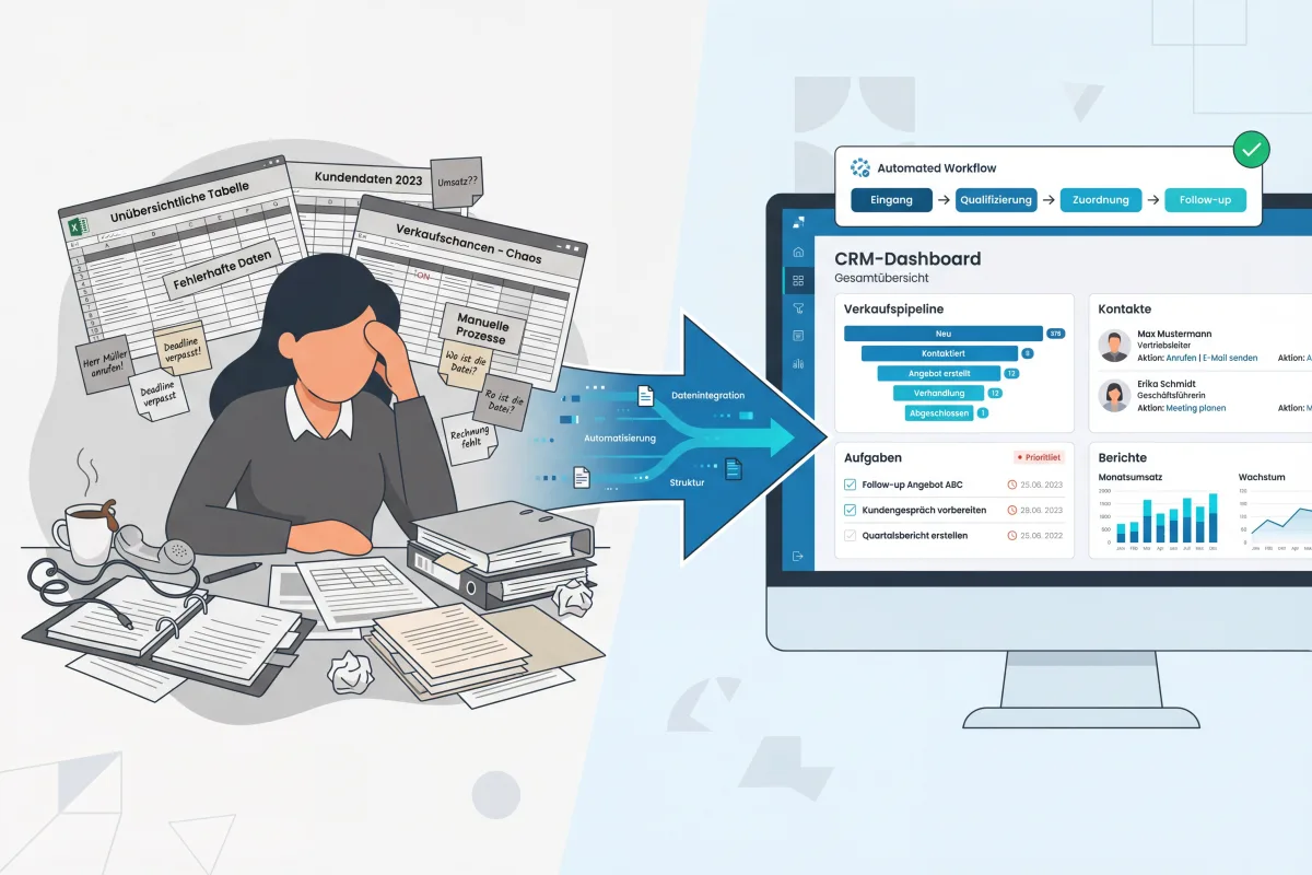 Ein CRM-System ersetzt nicht nur die Excel-Tabelle — es verändert die Art, wie Ihr Team mit Kunden arbeitet. Die wichtigsten Unterschiede:
