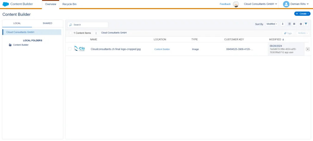 Der Marketing Cloud Content Builder ist das zentrale Content-Management-Tool innerhalb der Salesforce Marketing Cloud. Er konsolidiert Bilder, Dokumente, E-Mail-Vorlagen und wiederverwendbare Content-Blöcke in einem einzigen Repository mit Drag & Drop-Oberfläche, AMPscript-Personalisierung und einer maximalen Dateigrösse von 20 MB.