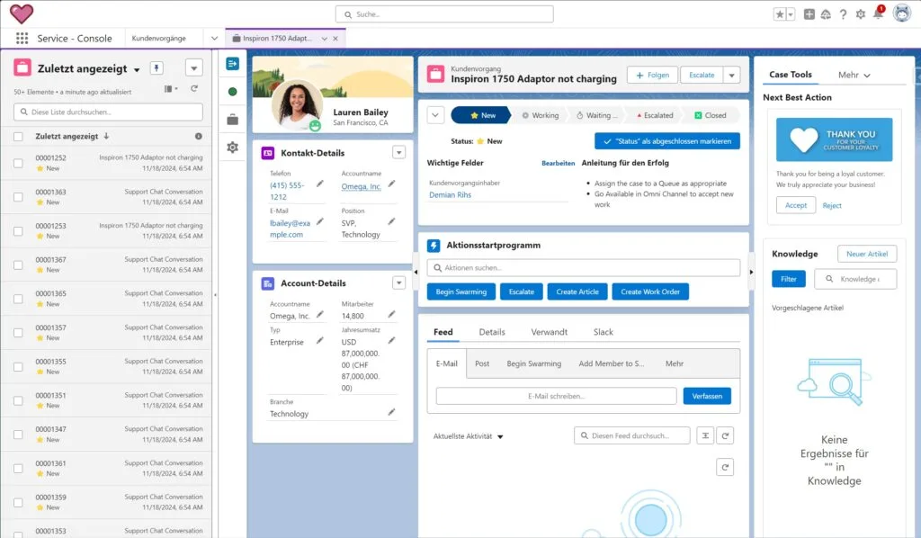 Die Plattform ermöglicht eine nahtlose Verwaltung von Cases über verschiedene Kommunikationskanäle hinweg und bietet durch KI-gestützte Empfehlungen proaktive Lösungsvorschläge.